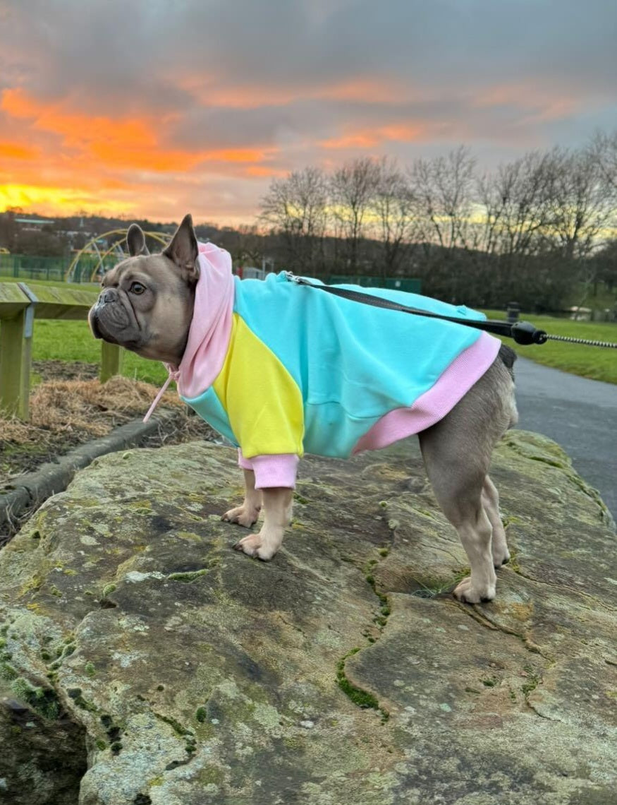 Wir stellen Ihnen den New Orleans Hoodie vor, die perfekte Möglichkeit, Ihren pelzigen Freund warm und stilvoll zu halten! Dieser Kapuzenpullover besteht aus hochwertigen Materialien und verfügt über eine lebendige Farbpalette, die von der pulsierenden und lebhaften Stadt New Orleans inspiriert ist. Die Kombination aus Rosa, Gelb, Blau und Blaugrün sorgt für einen verspielten und lustigen Look, genau wie die farbenfrohen Gebäude und das geschäftige Treiben Energie des French Quarter. Der Kapuzenpullover verfügt außerdem über eine Öffnung für das Geschirr, so dass Sie Ihren Hund problemlos auf Spaziergänge mitnehmen können, ohne sein gemütliches Outfit ausziehen zu müssen.