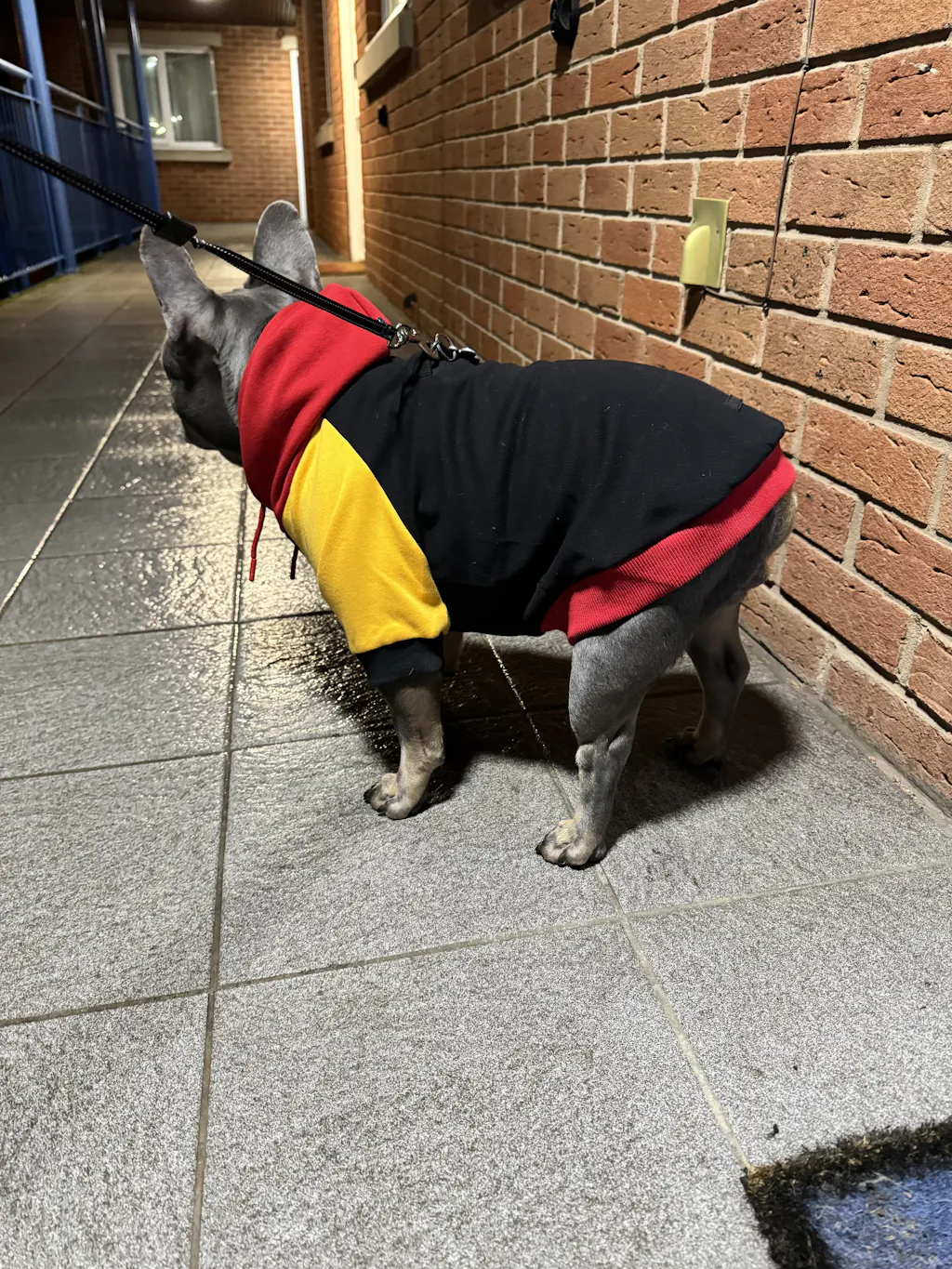 Absolutely amazing, it’s so practical and cosy for my pupper! It even has a hood and a slit on the back for your harnesses! Will defo be purchasing more clothing!